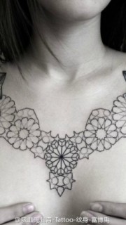 女人锁骨处好看流行的图腾花卉刺青图片