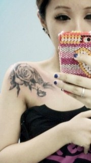 靓女锁骨处乖巧是的图腾藤蔓纹身图案