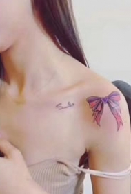 女孩子纹在肩部锁骨小清新英文等纹身图片