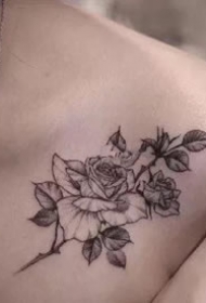 玫瑰纹身图 女生锁骨上黑色的玫瑰纹身图片