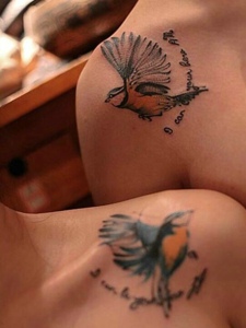 一对情侣锁骨下的小燕子纹身刺青
