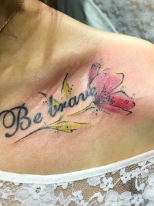 一枝花与英文字母的锁骨纹身刺青