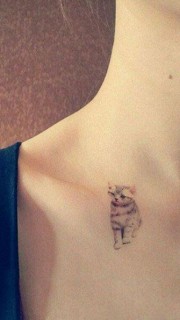 女生锁骨漂亮可爱的喵星人纹身