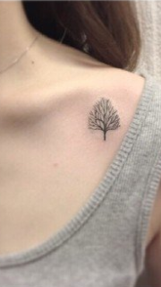 美女锁骨旁小树纹身图案