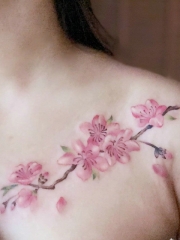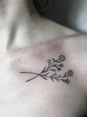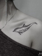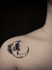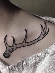 美女锁骨上性感的黑色的麋鹿角纹身图片