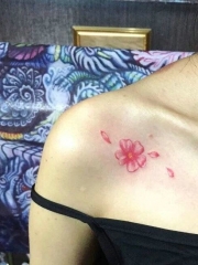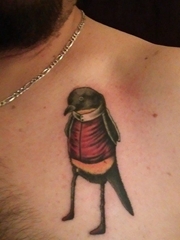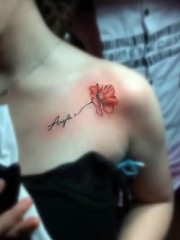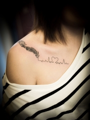 男性锁骨上的英文字和右胸部上的一只天使翅膀纹身图片