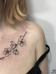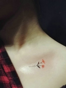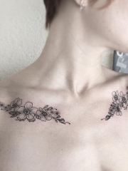 女生锁骨处小花朵纹身刺青