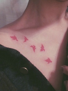 性感女生锁骨处时尚小鸟纹身图案