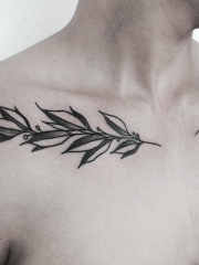 男性锁骨叶子线条点刺小清新纹身图案