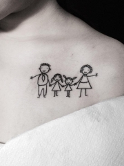 锁骨线条幸福的一家人物纹身图案