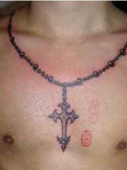 男性锁骨个性十字架项链纹身图片