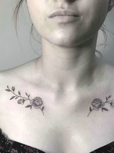 分别落在锁骨两边小清新花朵纹身图案