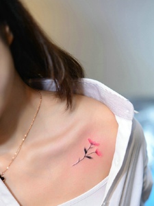 锁骨处小清新唯美花朵纹身图案