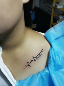 男士锁骨处个性心电图纹身图案