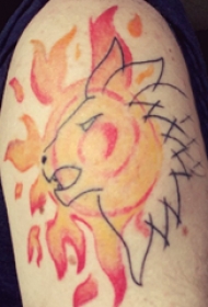 太阳和狮子纹身图案 男生大臂上太阳和狮子纹身图片