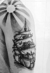 纹身太阳图案 男生大臂上太阳和云纹身图片