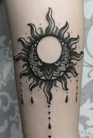 太阳月亮纹身图案 女生大臂上太阳和月亮纹身图片