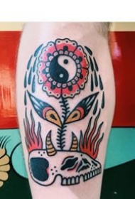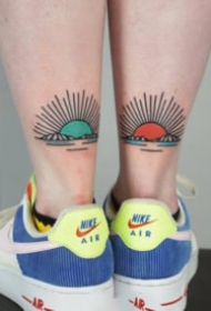 欧美小腿纹身 男生小腿上月亮和太阳纹身图片