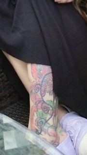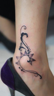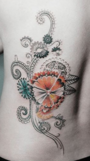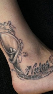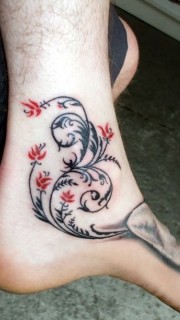 靓女脚部彩色蝴蝶精灵藤蔓纹身