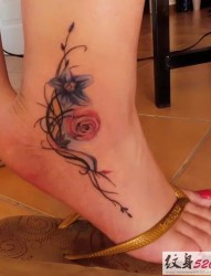 美女脚踝好看的花藤纹身图案