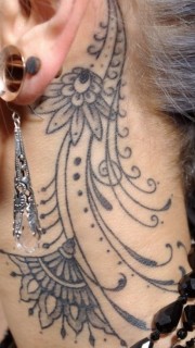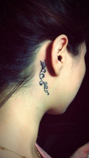 耳部漂亮的藤条藤蔓纹身