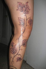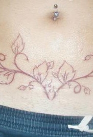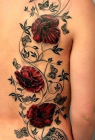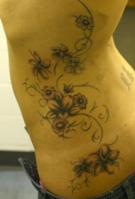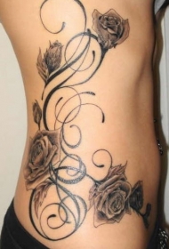 腰侧黑灰玫瑰花藤蔓纹身图案