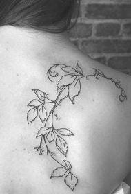 肩胛骨简约线条葡萄藤蔓纹身图案