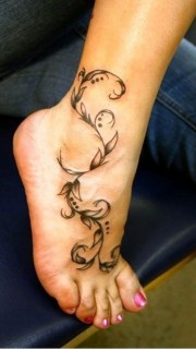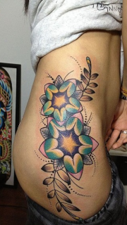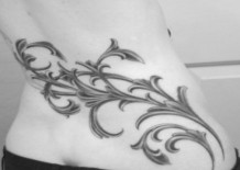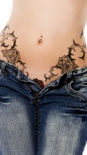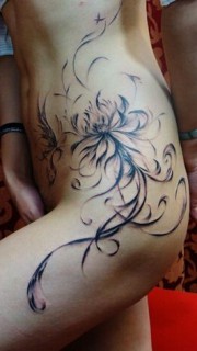 美女臀部个性花卉蝴蝶藤蔓纹身