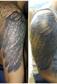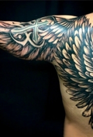 天使翅膀纹身图案 神秘黑灰色调的天使翅膀纹身图案