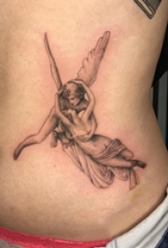纹身守护天使 女生腹部黑灰的守护天使纹身图片