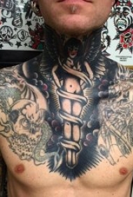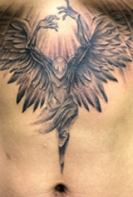 纹身守护天使 男生胸部黑色的天使纹身图片