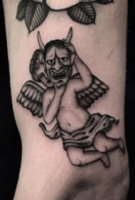 纹身小天使-黑灰色的一组西方小天使纹身图案