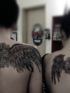 带着天使的羽翼降临人间的纹身