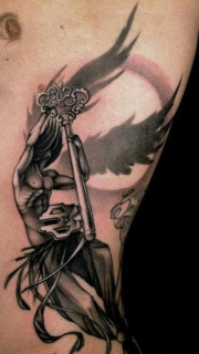 侧腰天使钥匙纹身图案