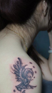 美女天使时尚肩部纹身