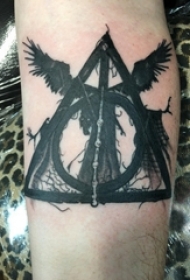 男生手臂上黑灰点刺几何简单线条天使纹身图片