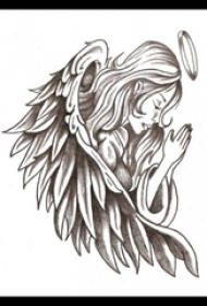 黑灰素描文艺唯美天使翅膀纹身手稿