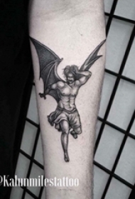 纹身守护天使 男生手臂上黑色的天使纹身图片