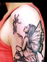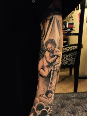 如初生的婴儿般单纯美好黑灰手臂天使纹身