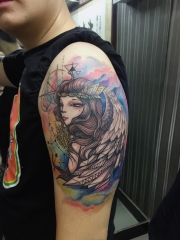 不老帅哥明星贝克汉姆手臂天使图案纹身