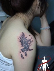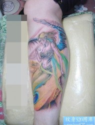 手臂可爱漂亮的彩色小天使丘比特纹身图片