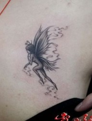 女孩子胸部精灵翅膀纹身图片