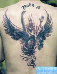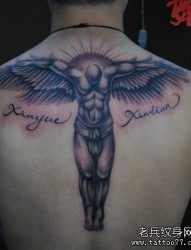 背部帅气时尚的守护天使纹身图片