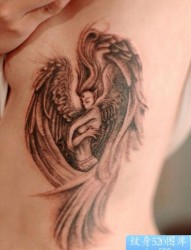 女孩子侧胸一张守护天使纹身图片