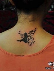 女孩颈部可爱的图腾蝴蝶精灵纹身图片