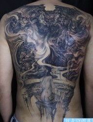超酷超帅的满背恶魔天使纹身图片