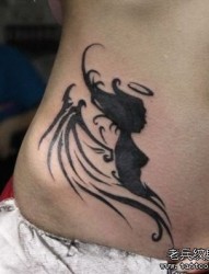 女人腹部好看的图腾天使纹身图片
