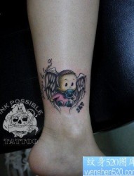 女人腿部可爱的小天使纹身图片