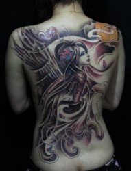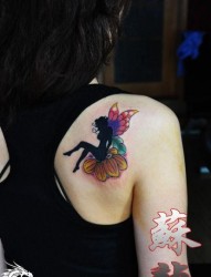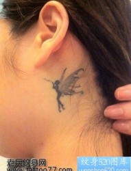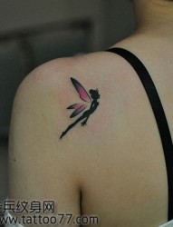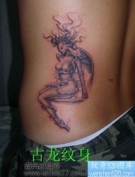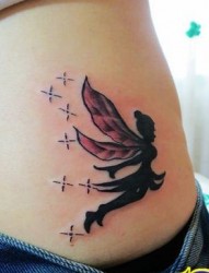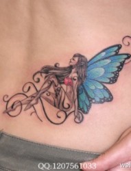 女孩子腰部好看流行的精灵翅膀纹身图片