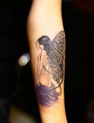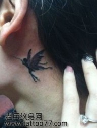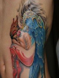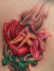胸部彩色精灵玫瑰纹身图片纹身图案
